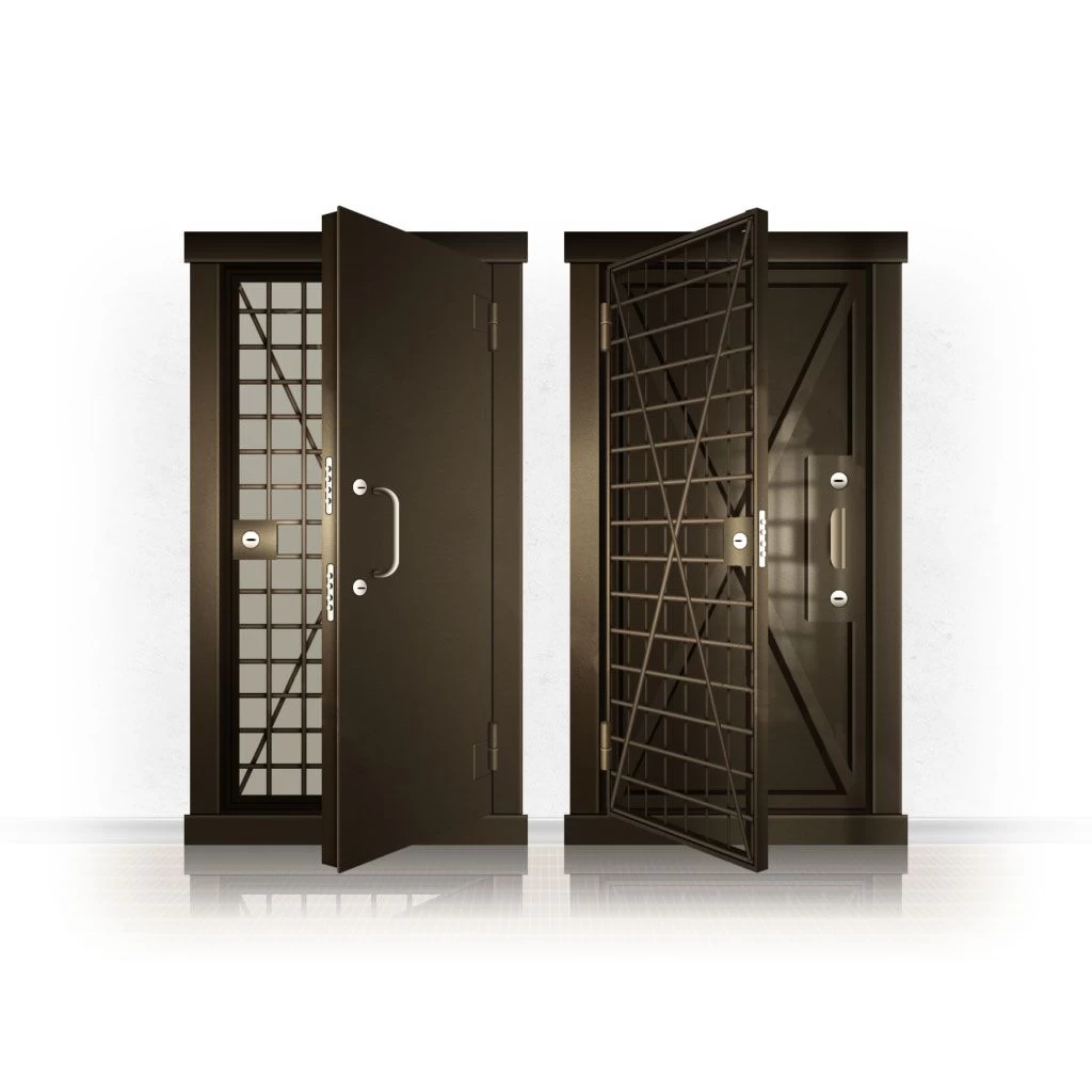 Металлические двери КХО и КХН представляют собой входные блоки, обладающие высоким уровнем взломостойкости и состоят из трех основных элементов: усиленного каркаса, сплошного металлического полотна и решетчатой двери. Дверной блок изготавливается из стального уголка 100*100 мм. Места крепления блока к стене цементируются и закрываются стальными наличниками шириной 40 мм. Крепеж заходит вглубь стены на 80 мм. В конструкции внешней створки монтируются ребра жесткости, для обшивки используется сталь толщиной не менее 3 мм. Внутренняя решетка изготавливается из прутка диаметром 16 мм. Размер ячеек решетки должен составлять не более 15 на 15 см. В точках пересечения прутья надежно приваривают друг к другу. В КХО и КХН необходимо поддерживать определенную температуру и влажность. Для этого внутреннее пространство глухой двери заполняется теплоизоляционным материалом, а по периметру двери приклеивается уплотнитель. Такие двери оборудуются замками с повышенным уровнем взломостойкости. Специализированные двери КХО и КХН в Орске могут быть оснащены сигнализацией, в конструкции могут быть проушины для навесного замка и элементами для опечатывания. Если идет речь о двери в комнату хранения оружия, в створке оборудуется окно для выдачи оружия и спец. средств, которое накрывается стальной дверцей.