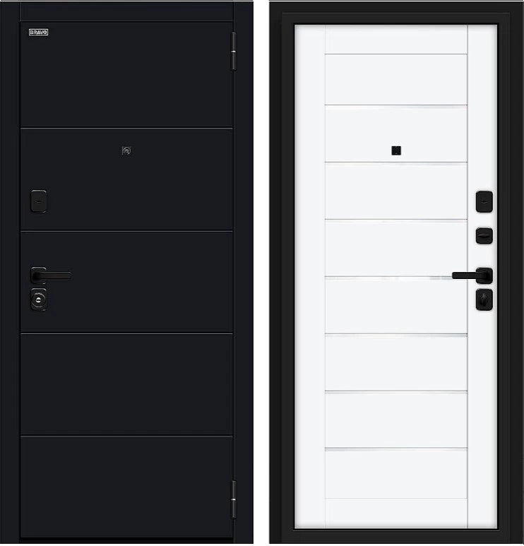 Надежная входная Дверь Браво Прайм/SBlack-Black Shell/White Silk премиум класса по цене 40 311 руб. Большая толщина стали защитит от проникновения в ваш дом, квартиру или коттедж. Используется очень качественная фурнитура: замки, цилиндры, ручки, защелки. Покрытие и отделка двери изготовлено под внимательным контролем производителя. Дверь имеет долгий срок службы и гарантию.